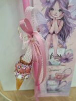 Λαμπάδα φούξια,40 εκ.για κορίτσια,διακοσμημένη με γυάλινο πολύχρωμο